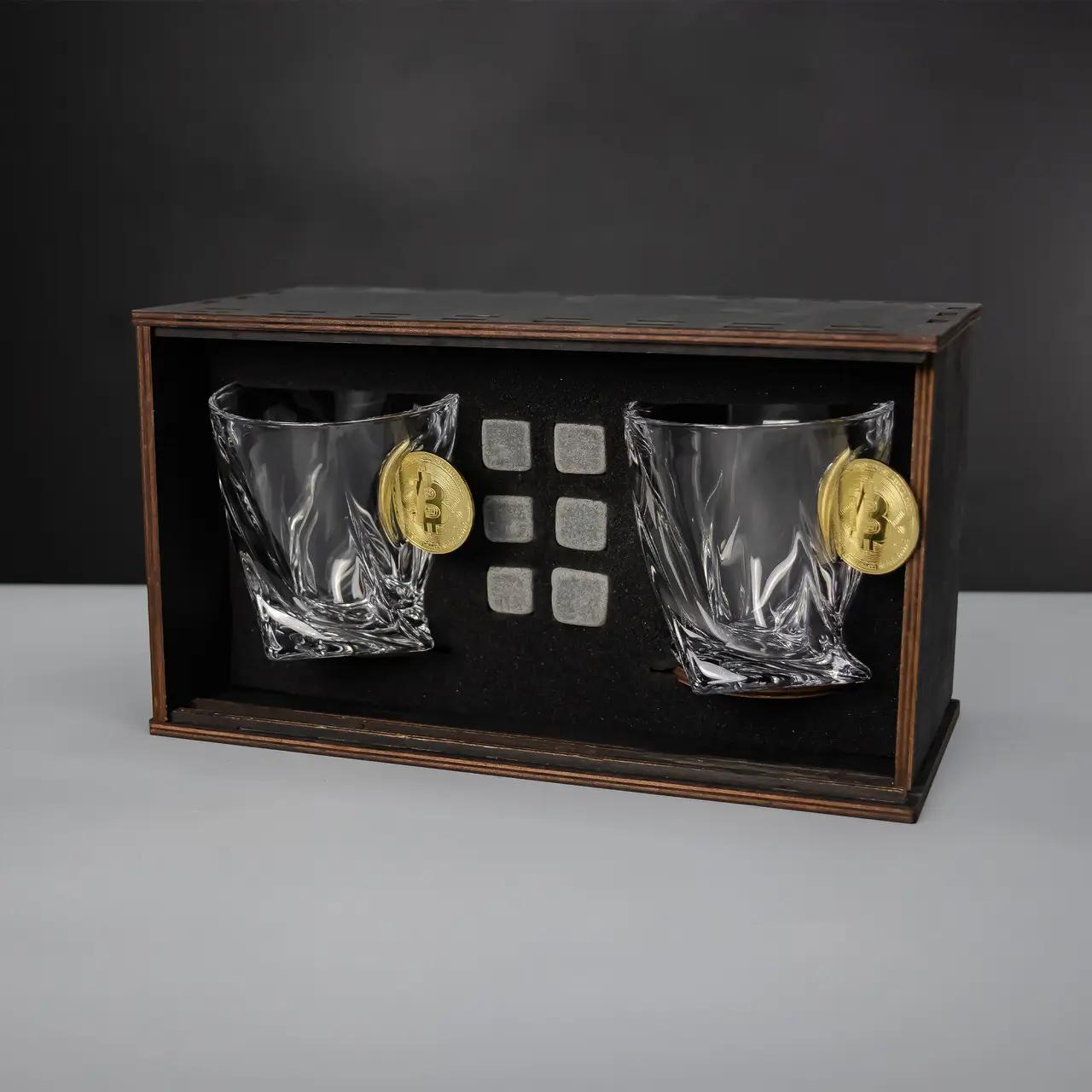 Набір на 2 кришталеві склянки (з біткоїнами)