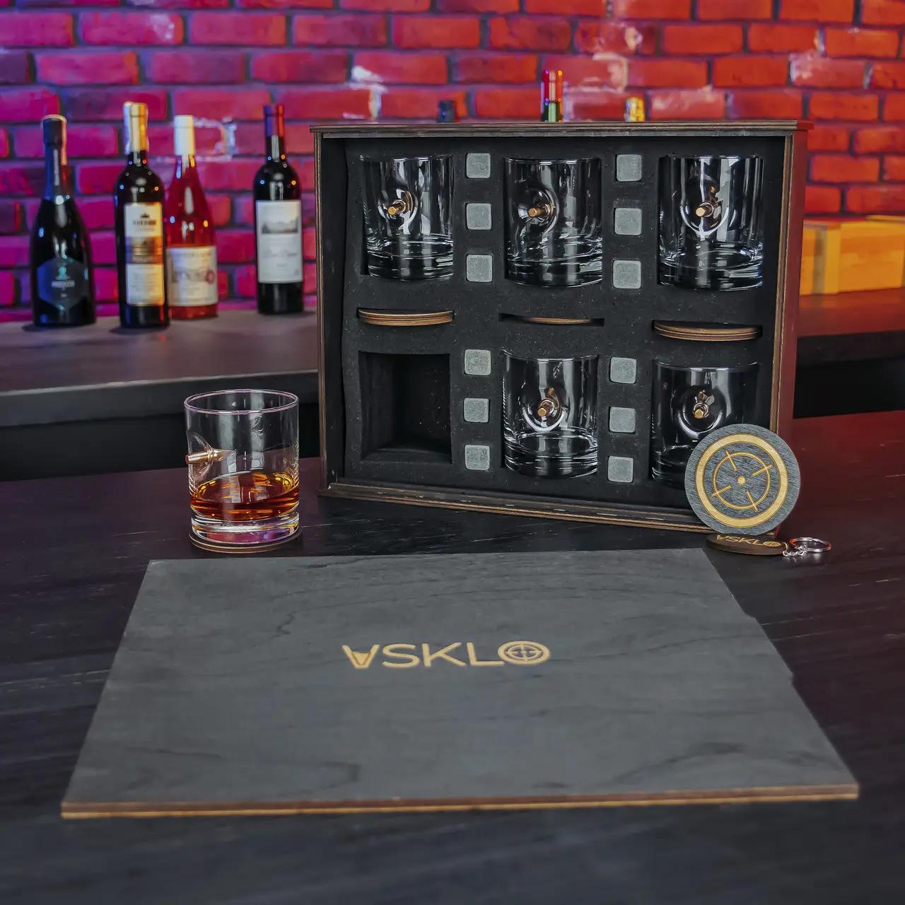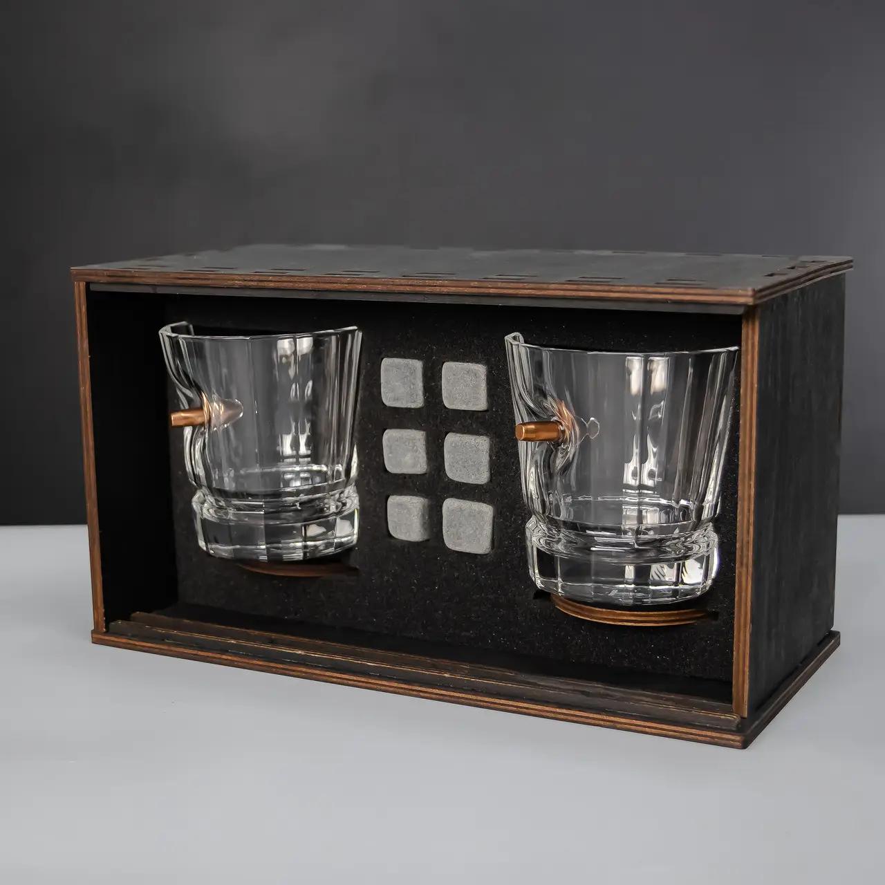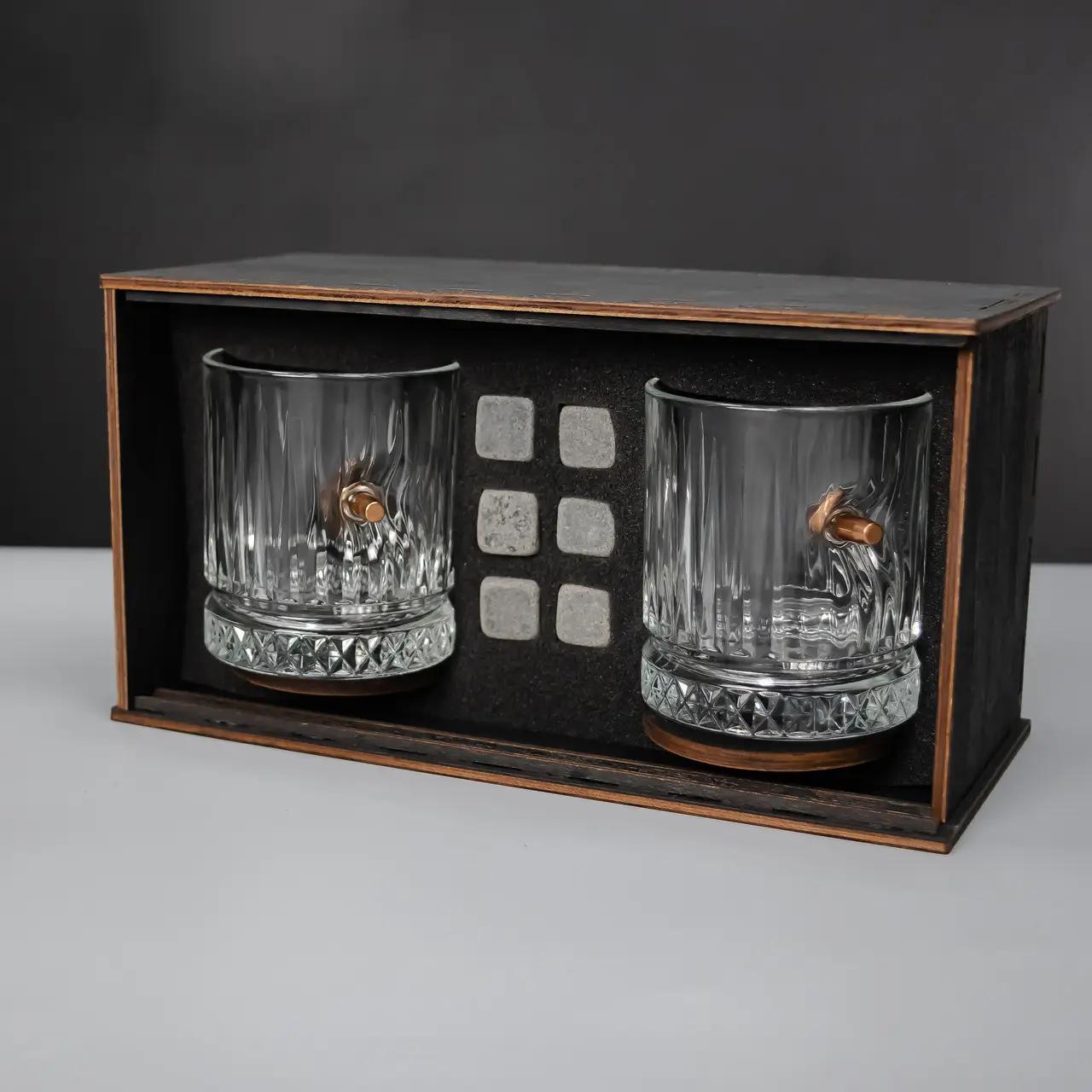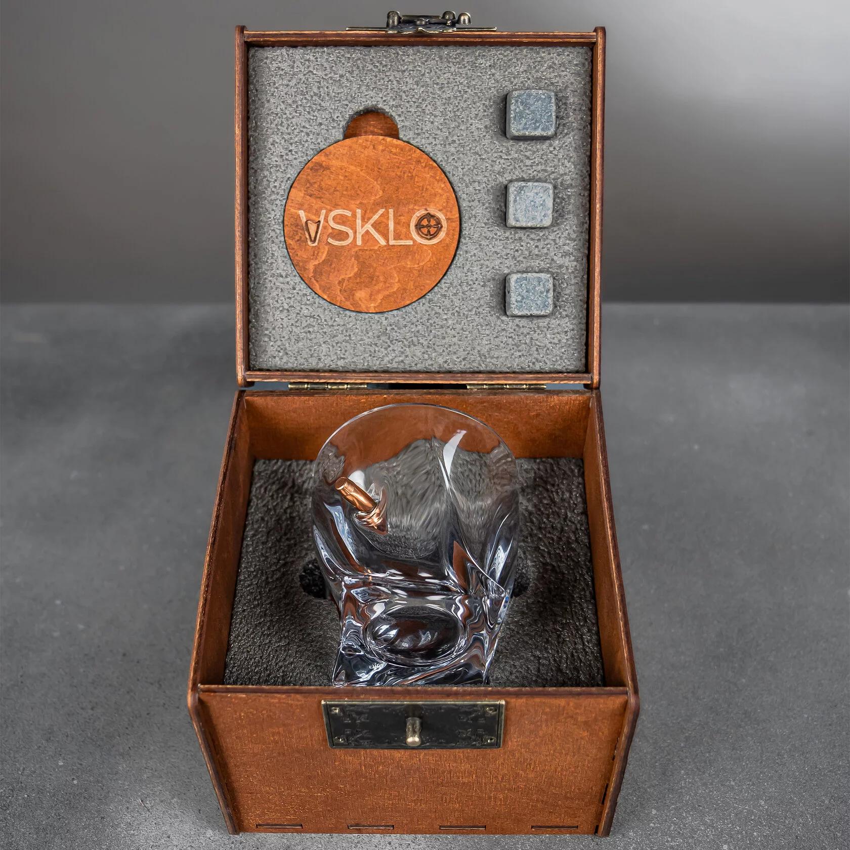 - Подарункові набори — містять склянки, графини, охолоджувальне каміння, підставки та навіть ексклюзивну дерев’яну коробку.